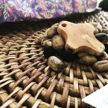 Traditional japamala - recitation garland - made with wood or seeds, knotted and tassled.